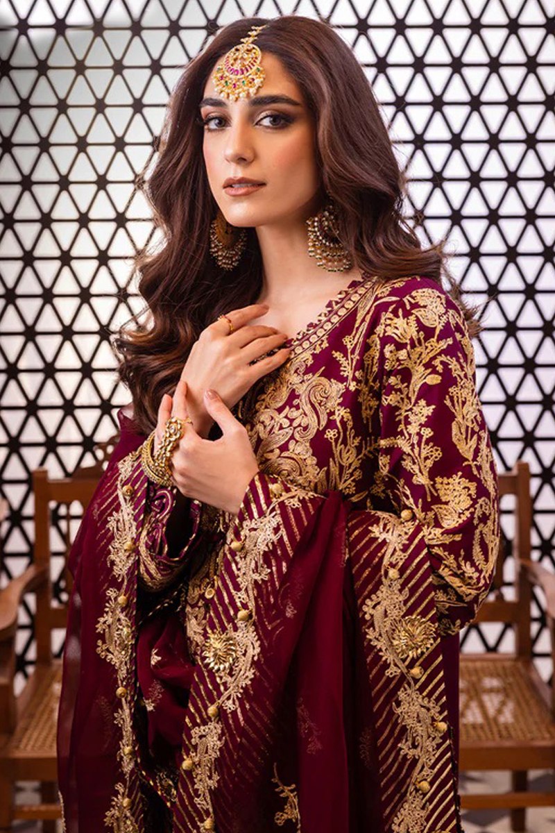 Asim Jofa Luxury Lawn Salwar Suit In Maroon