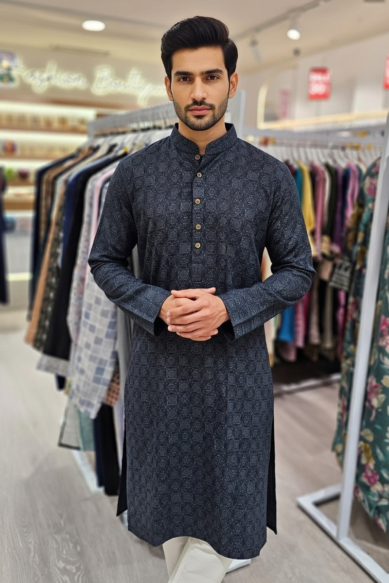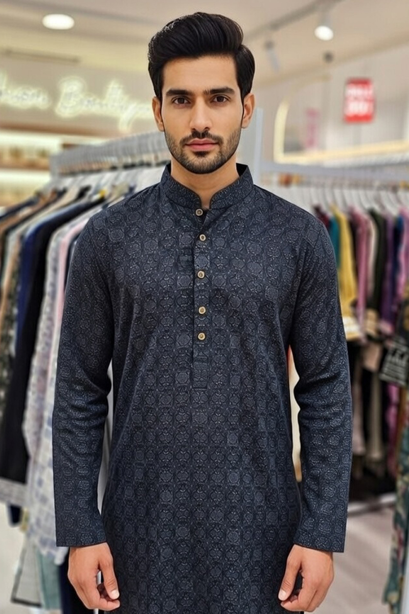 Embrace the Dacca Signature – Jupiter Punjabi, crafted in a baby pink premium fabric with a stylish silver, pink embroidery.