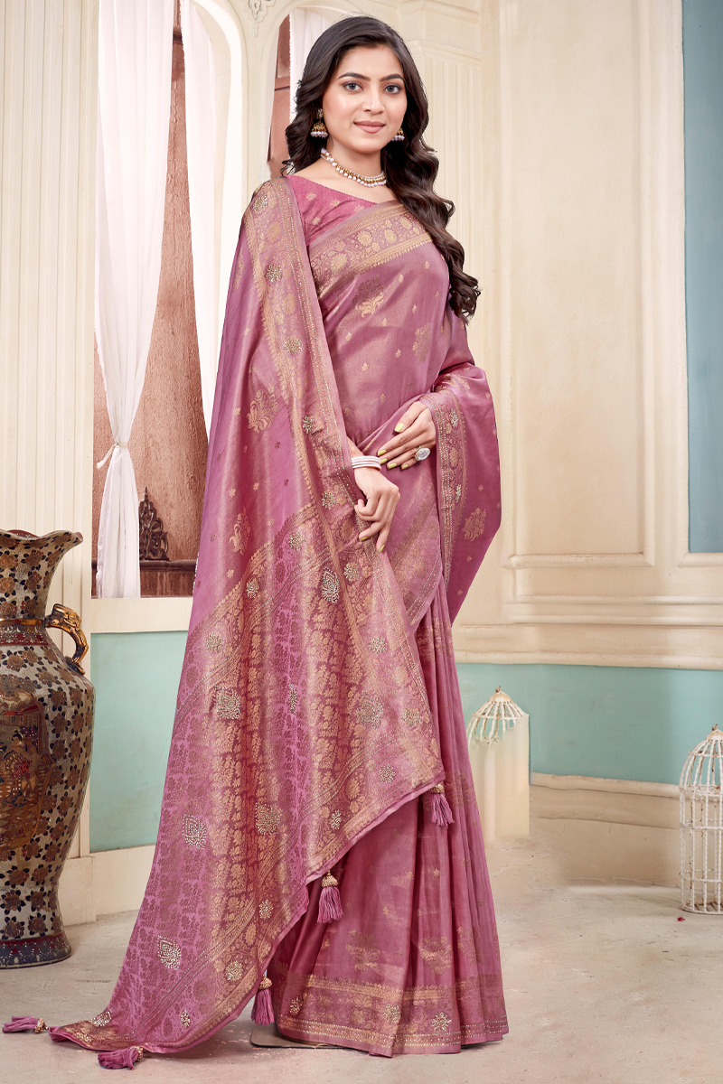 - Designer Silk Saree Stone Work In Purple.