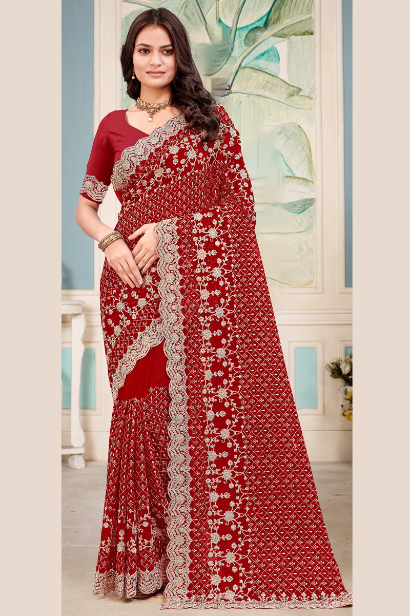 - Embroidered Designer Georgette Saree in Maroon