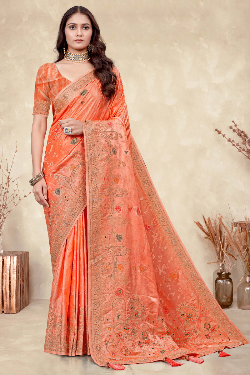 - Embroidered Designer Silk Saree In Orange.