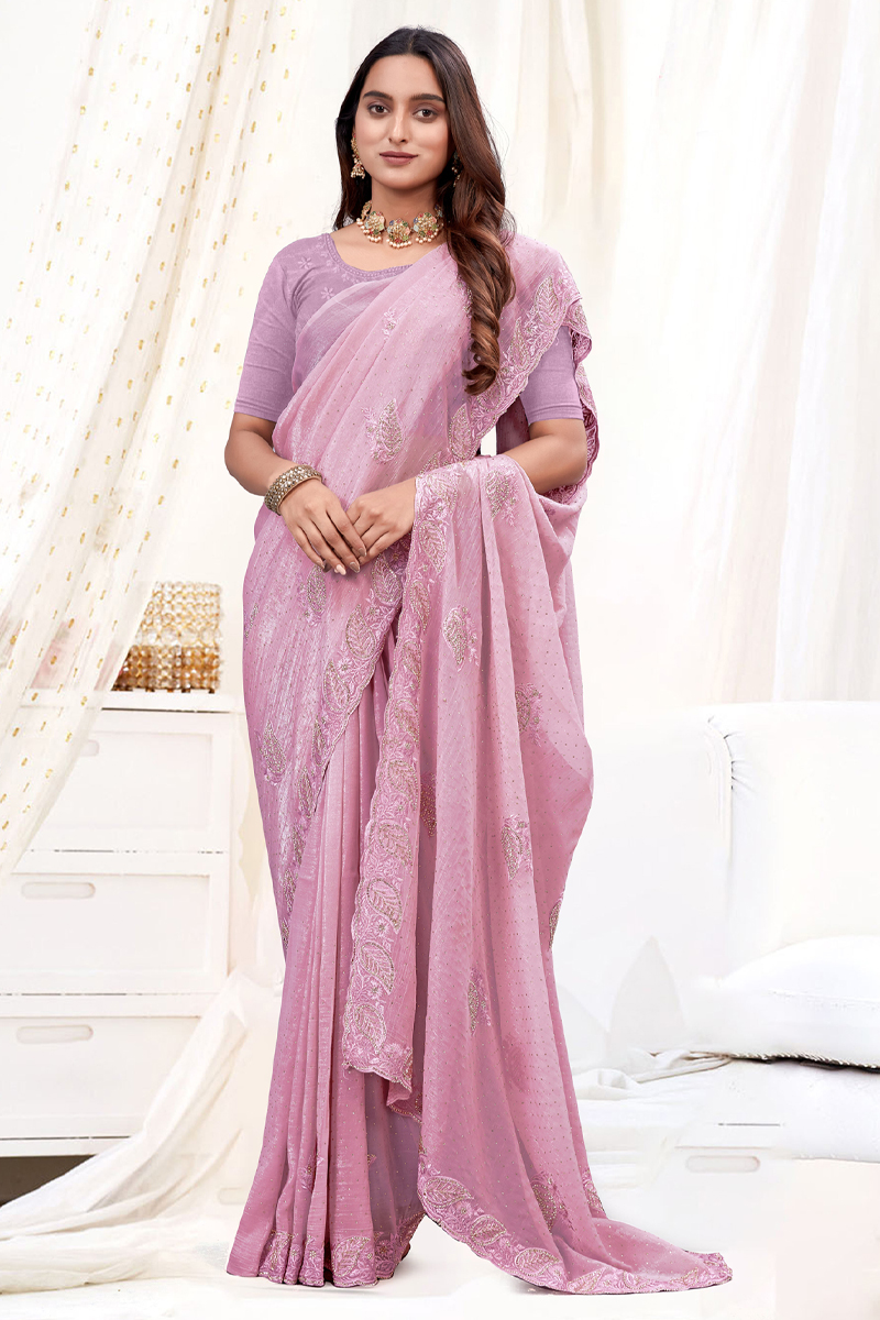 - Embroidered Designer Silk Saree In Pink.
