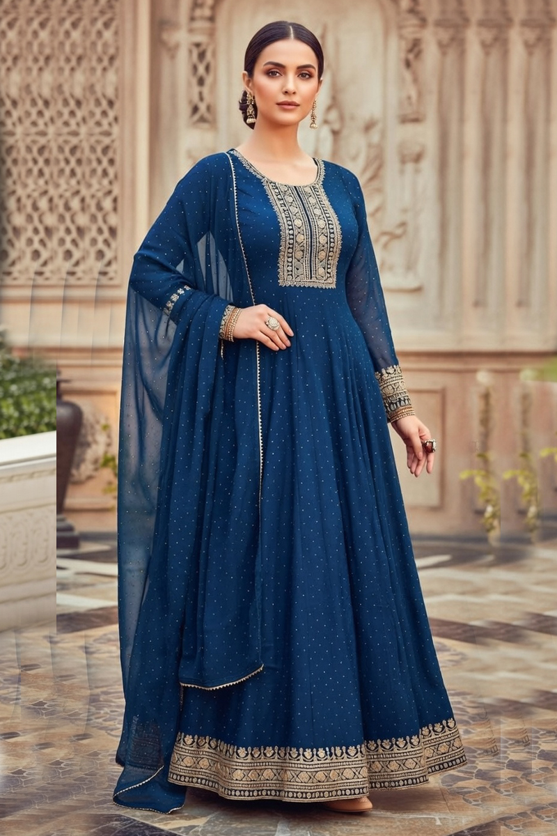 - Embroidered Silk Gown In Blue