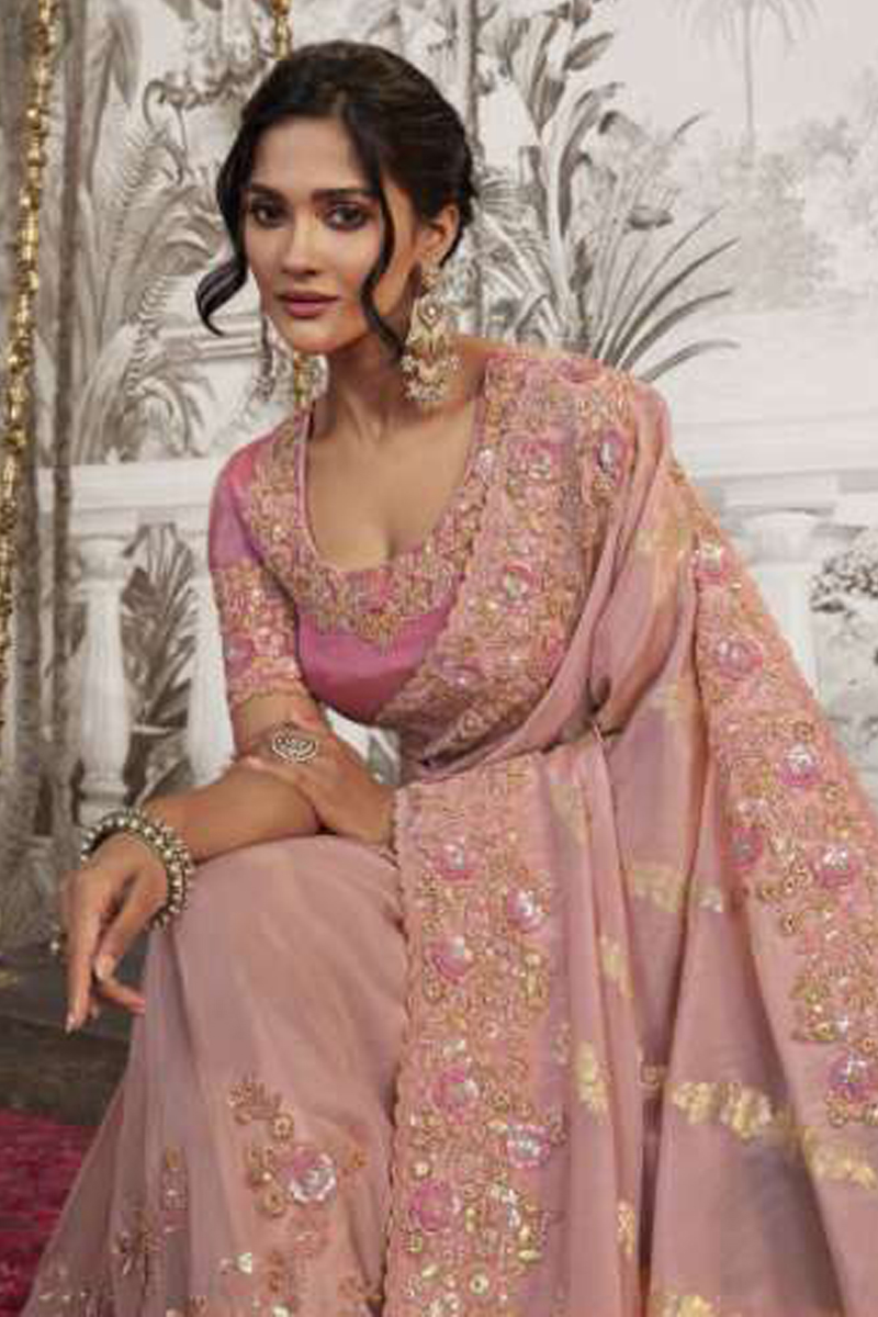 - Saree – Soft fancy saree with highlighted beautiful zari, embroidery work. Border with heavy latkan attached on pallu.