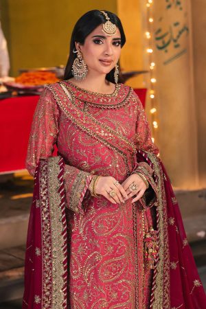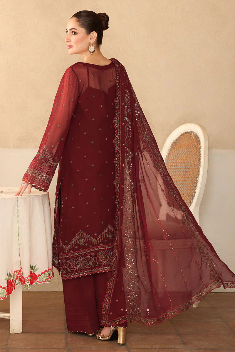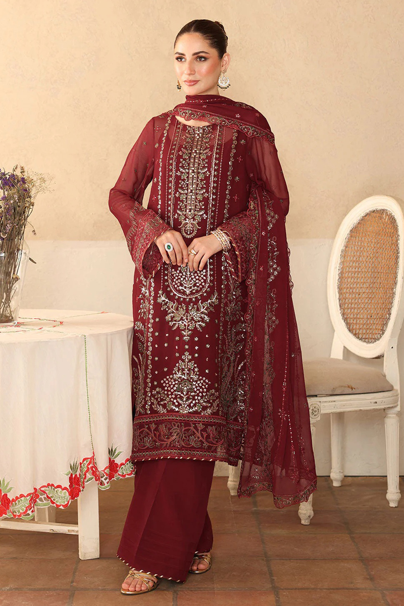 - Ramsha Embroidered Chiffon Salwar Suit In Maroon