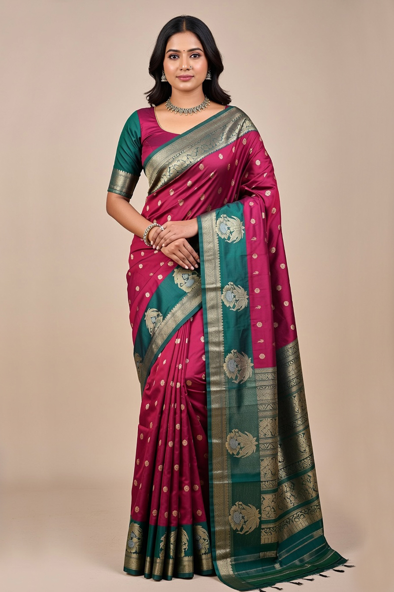 Whether worn for a special family occasion or a festive celebration, this traditional silk saree is a timeless addition to any ethnic wardrobe.