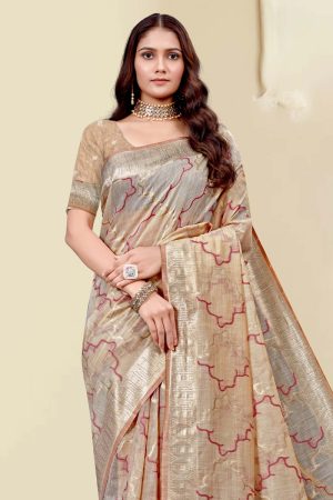 Designer Organza Saree In Golden